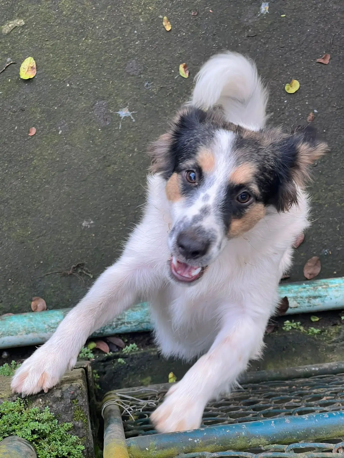 Eros (9 meses) es el hermano blanco y negro de Zeus. Rescatado a los 4 meses, está castrado, vacunado y es cariñoso y de tamaño mediano-grande esperando adopción.