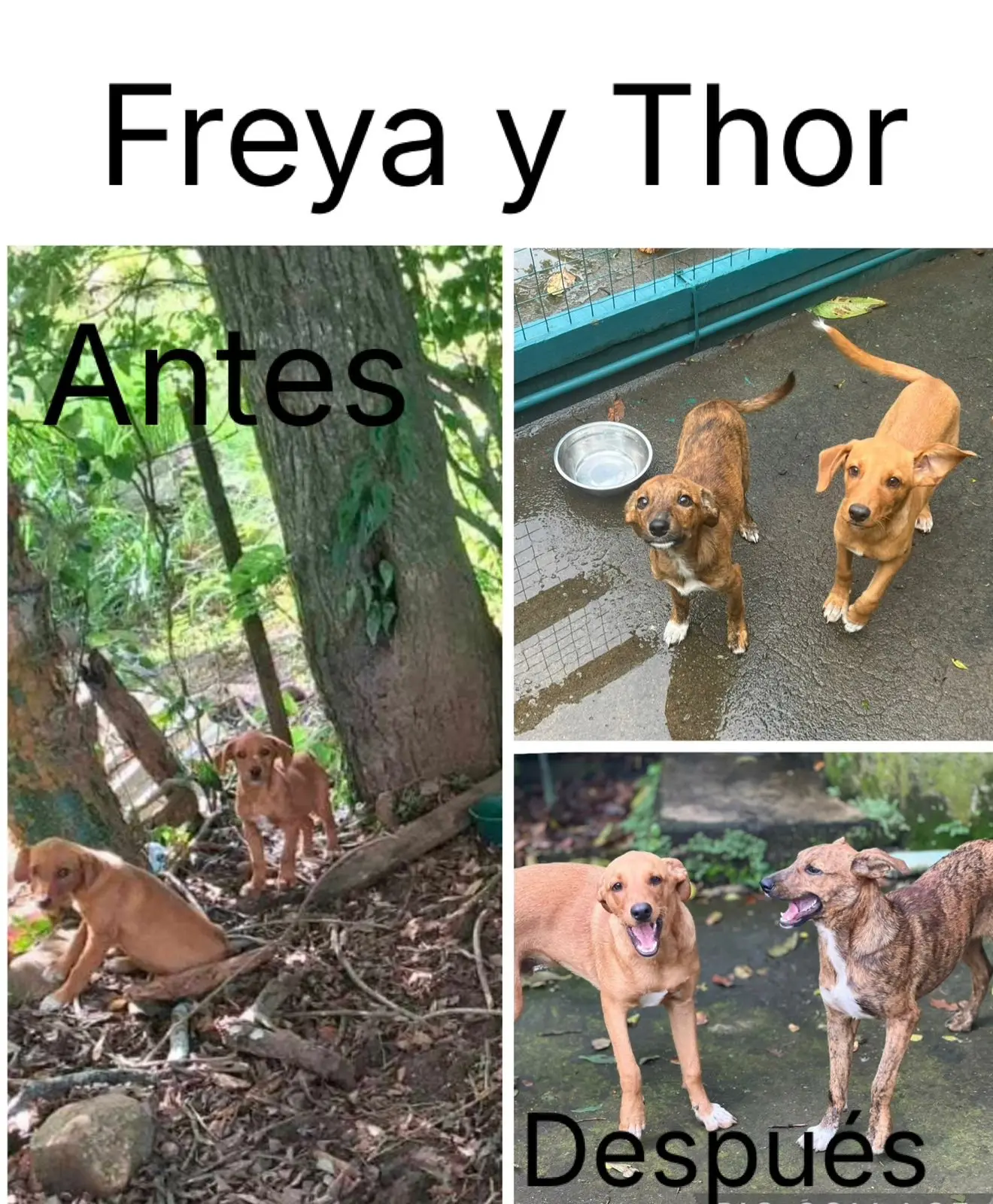 Thor (7 meses) es el hermano colorado de Freya. Rescatado a los 4 meses, está castrado, vacunado y lleno de energía. Adopción conjunta con Freya es bienvenida, pero no obligatoria.